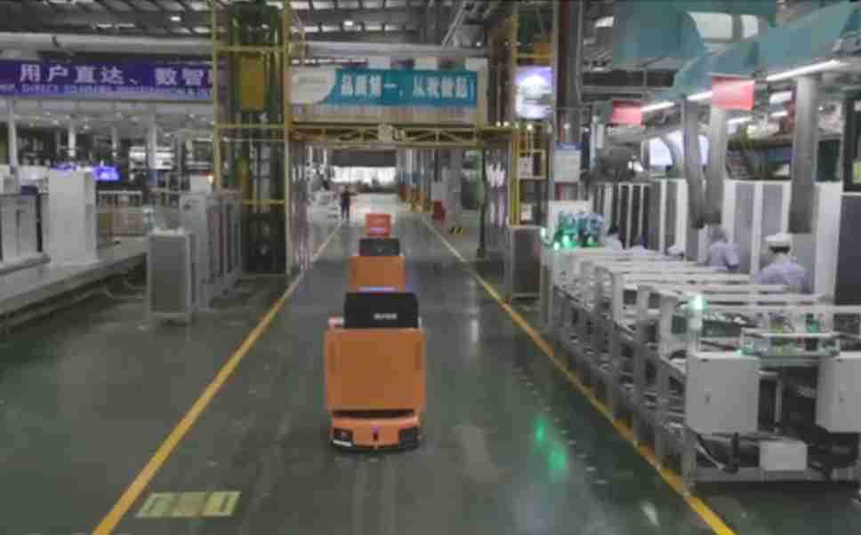 为车载冰箱物流配送打造的智能解决方案,,,包含产中物流通过潜伏举升AMR搬运至线边,,产后成品物流智能仓储,,流程包含产中物流智能齐套入库,,,,线边安灯叫料AMR智能配送至线边,,成品入库、、、出库,,,通过无人堆高车机器人,,,智能仓储管理替代人工作业管理,,,实现更高存储、、、更高效率、、、更具柔性化的解决方案。。。
